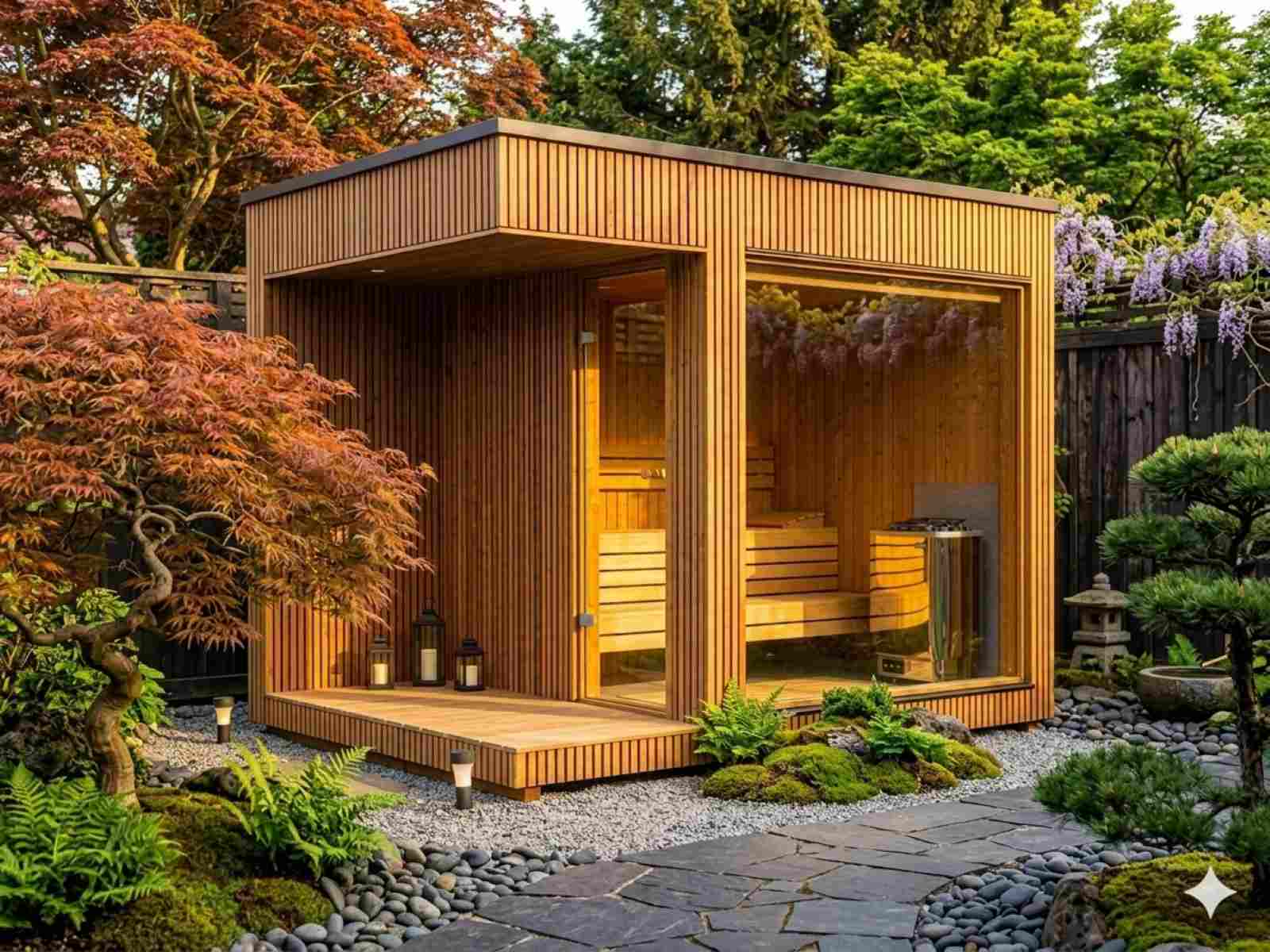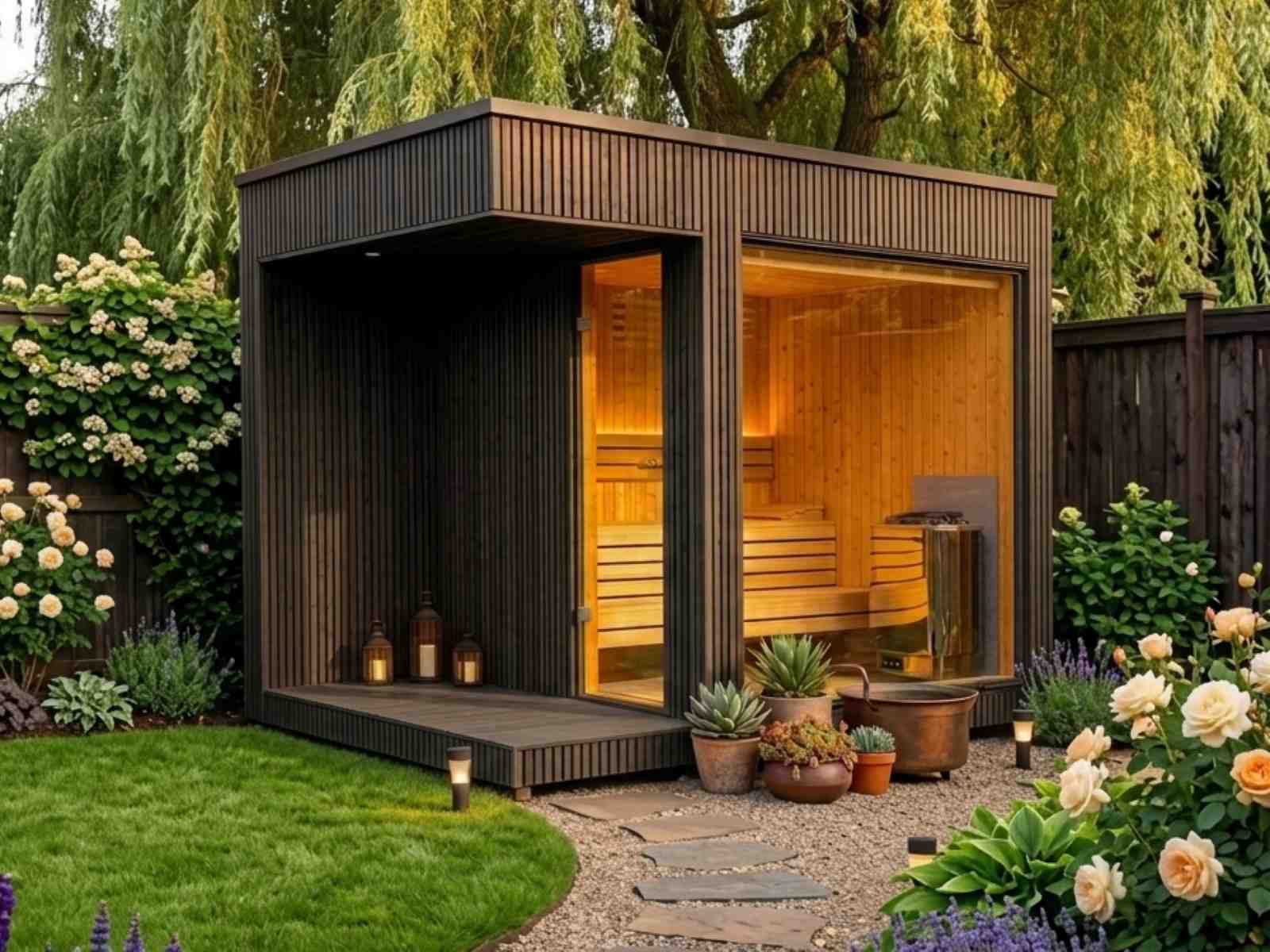 Das Entspannen in der Wärme einer Gartensauna ist durch ein passives therapeutisches Wärmeritual eine Wohltat für Körper und Geist.