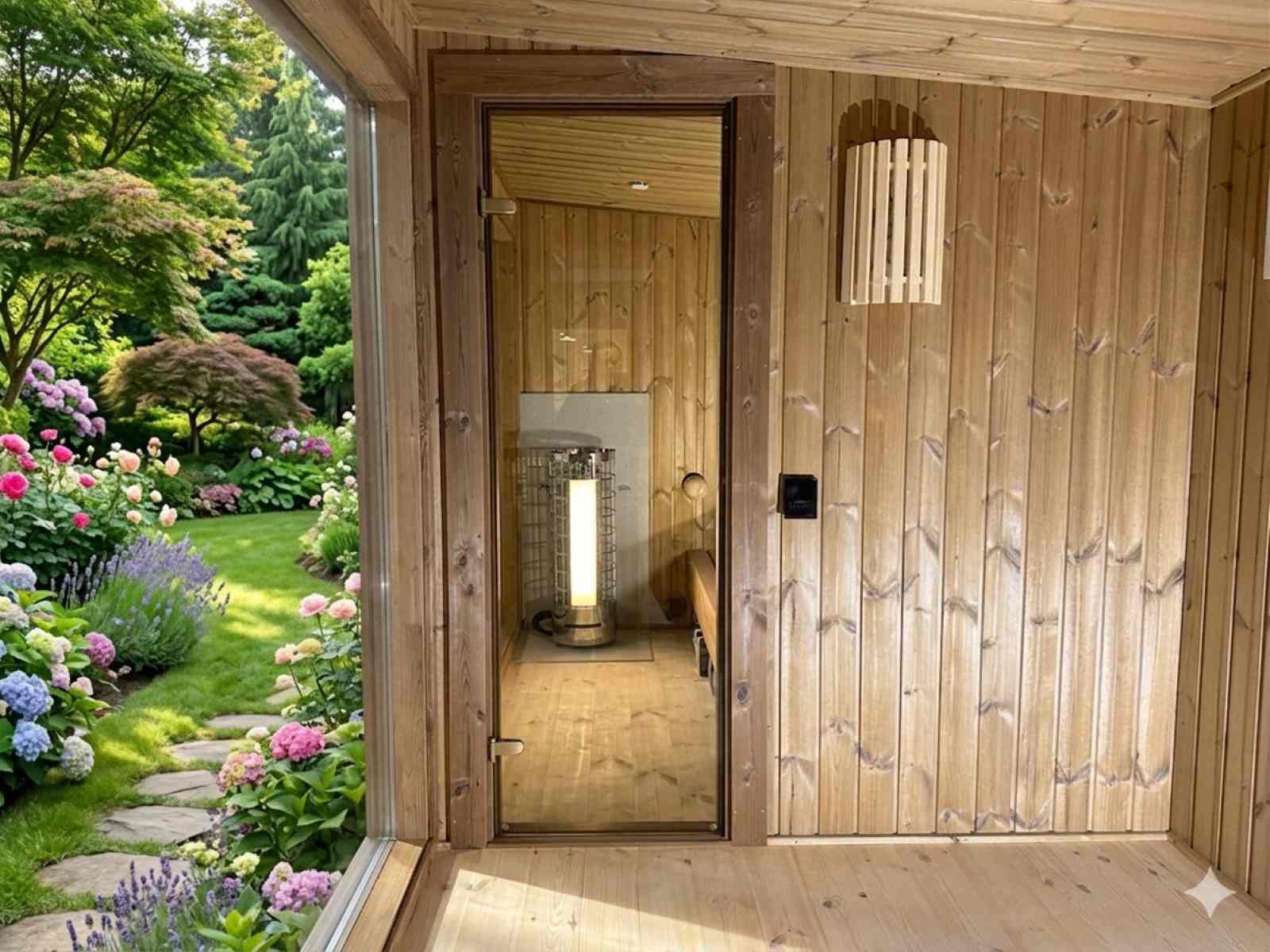 Gartensauna mit Vorraum vor: 4,4 x 2,3 m – Eine modulare Oase für 2–6 Personen.