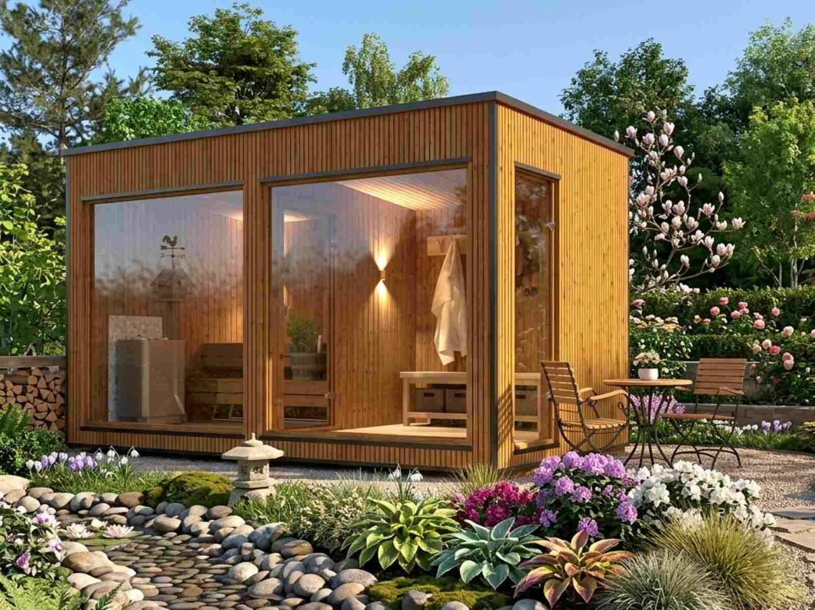 Diese Gartensauna mit Vorraum ist eine großartige Option für alle, die die Vorzüge einer Sauna im Garten genießen möchten. Sie bietet Komfort, Qualität und Stil.