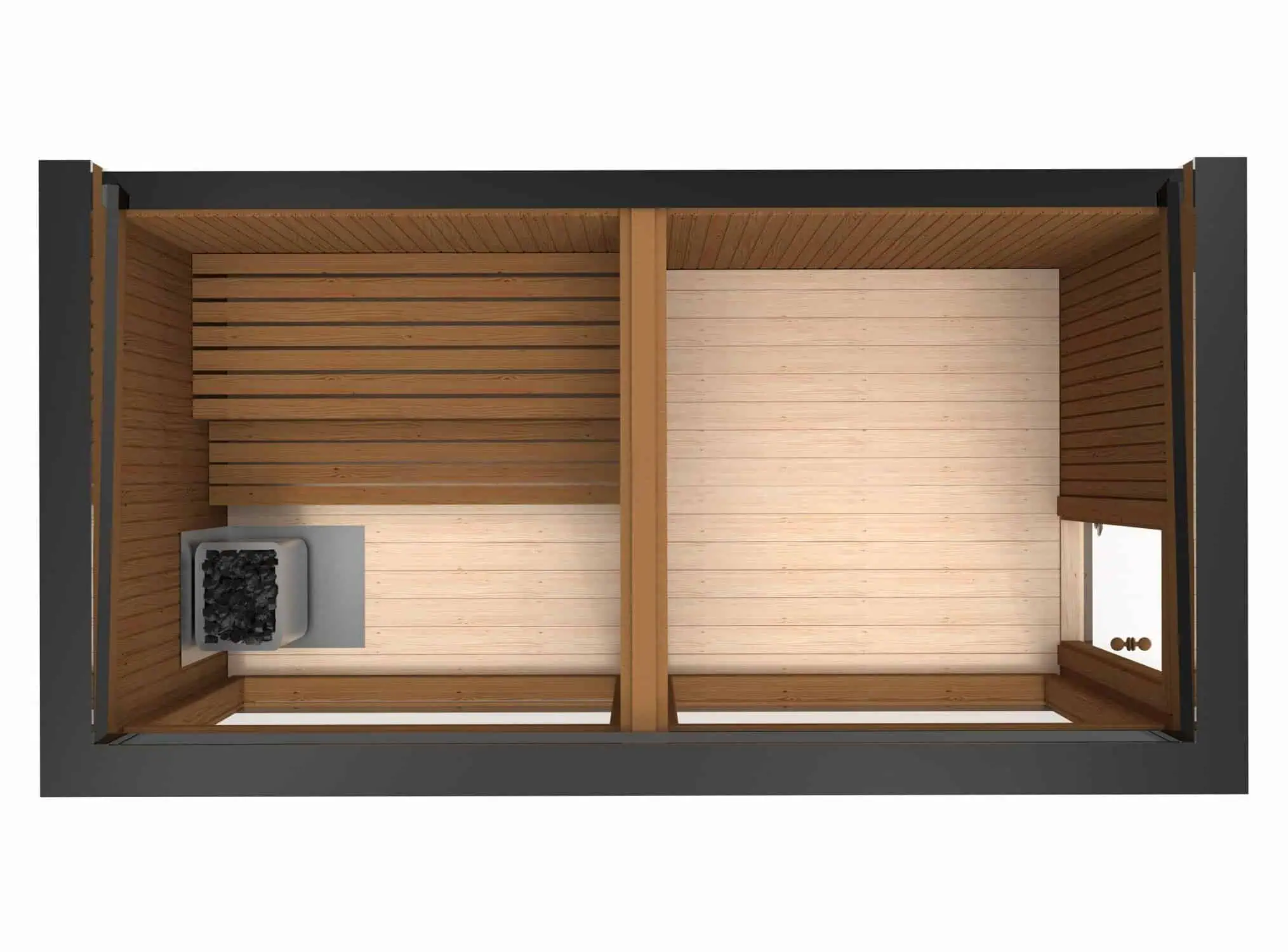 Die perfekte Wahl für alle, die eine Premium Gartensauna mit Vorraum im modernem Aussehen und hochmodernen Funktionen wünschen.