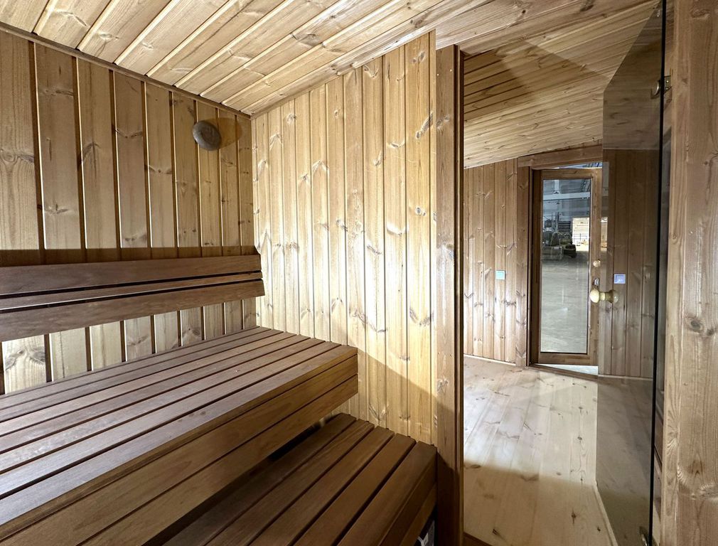 - Gerade Bänke im Saunainnenraum (Thermoholz)